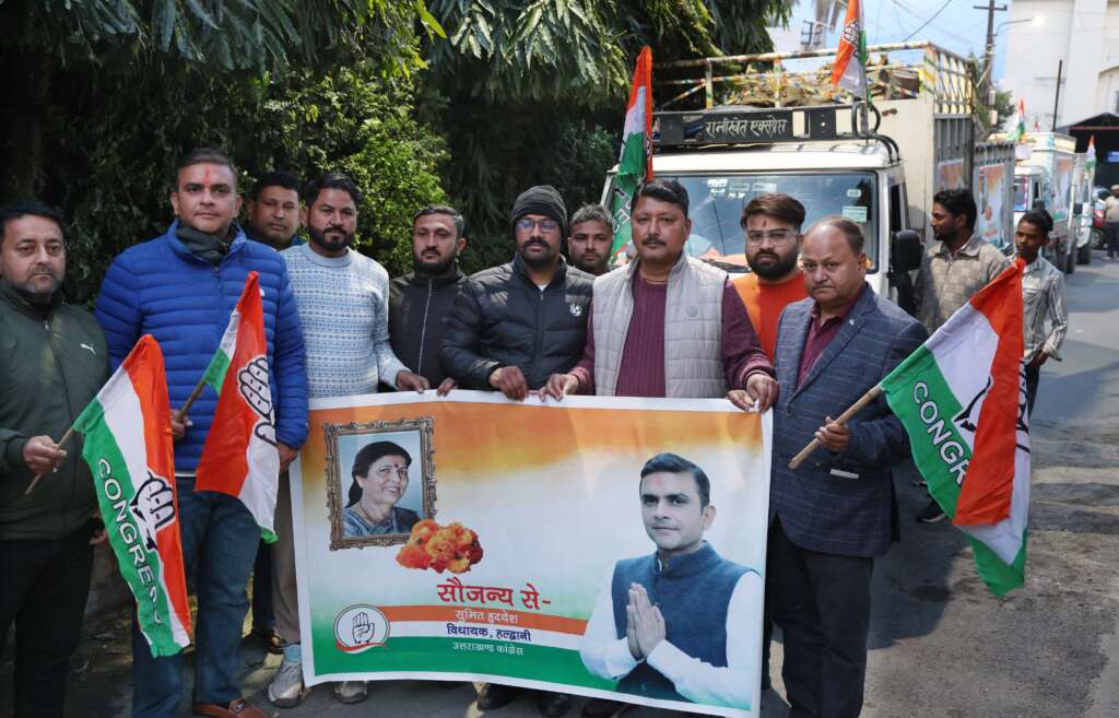 ठंड के प्रकोप में जनता के साथ विधायक सुमित हृदयेश, विभिन्न क्षेत्रों के लिए जलौनी लकड़ी से भरी गाड़ियों को दिखाई झंडी।