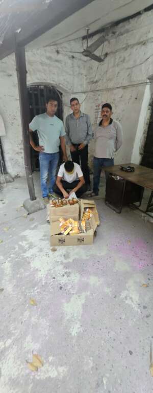 दबिश के दौरान अभियुक्त लोकेश कुमार टीम को देखकर दुकान की छत पर छिप गया। टीम द्वारा तत्परता से खोजबीन करते हुए दुकान की छत पर पहुंचकर अभियुक्त को गिरफ्तार किया गया। तलाशी के दौरान अभियुक्त के कब्जे से 118 टेट्रा पैक माल्टा देसी शराब तथा 23 पव्वा मैकडॉवेल व्हिस्की और आरएस ब्रांड के बरामद किए गए।