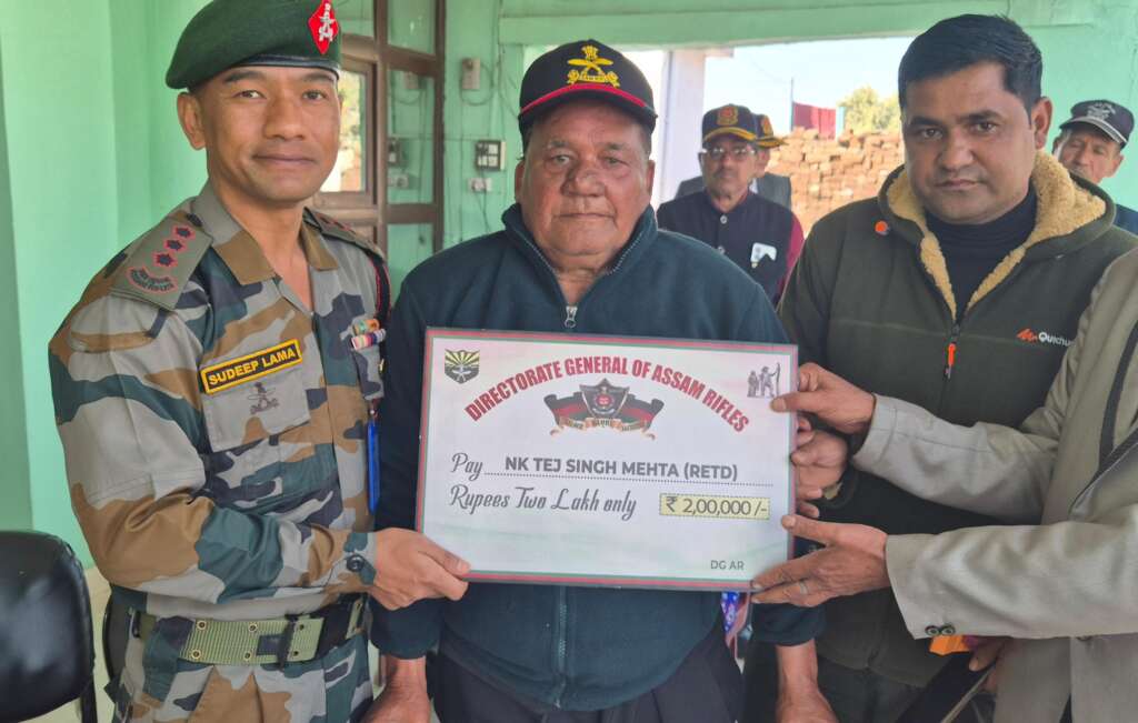 हल्द्वानी: असम राइफल्स, जो देश की सबसे पुरानी पैरामिलिट्री फोर्स और नॉर्थ ईस्ट में मजबूत उपस्थिति रखने वाली सुरक्षा इकाई है, अपने वीर सैनिकों व पूर्व सैनिकों के सम्मान और कल्याण के लिए निरंतर प्रतिबद्ध है। इसी क्रम में फोर्स ने हल्द्वानी के बहादुर पूर्व सैनिक Nk/GD तेज सिंह मेहता (रिटायर्ड) को उनकी सेवा और बलिदान के प्रति सम्मान स्वरूप 2,00,000 रुपये की सहायता राशि प्रदान की है।