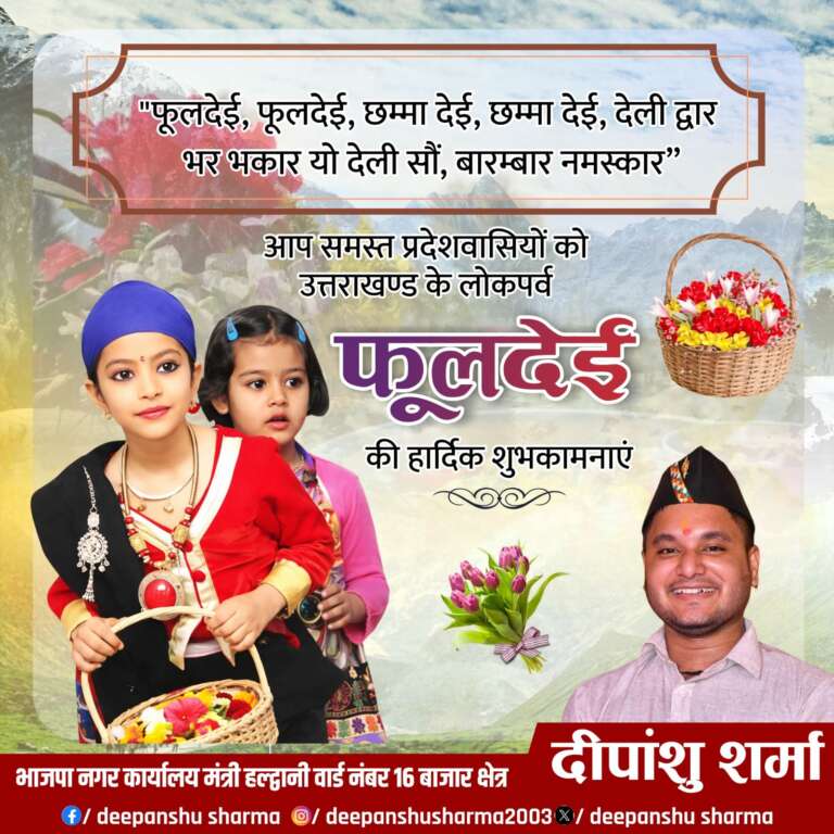 हल्द्वानी : बीजेपी नगर कार्यालय मंत्री दीपांशु ने लोकपर्व फूलदेई की दी शुभकामनाएं…