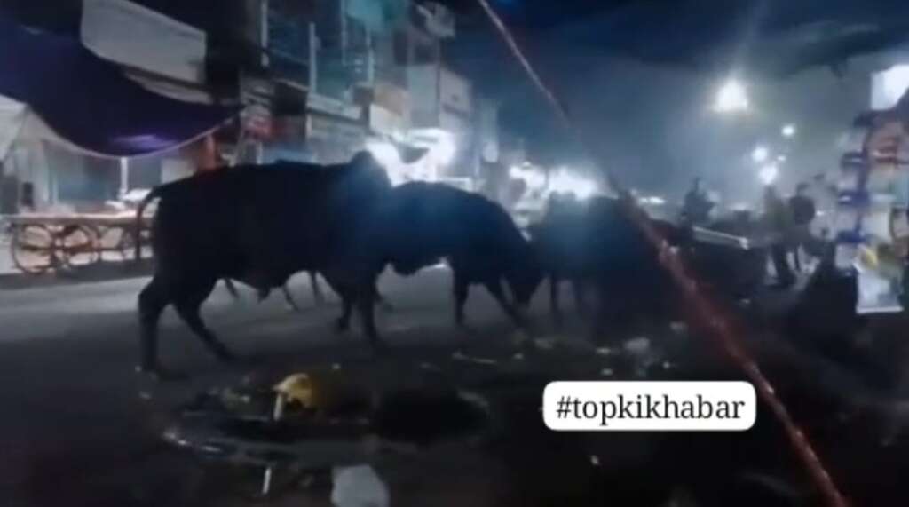 हल्द्वानी: आवारा सांडों की जबरदस्त भिड़ंत, मची अफरातफरी (वीडियो)