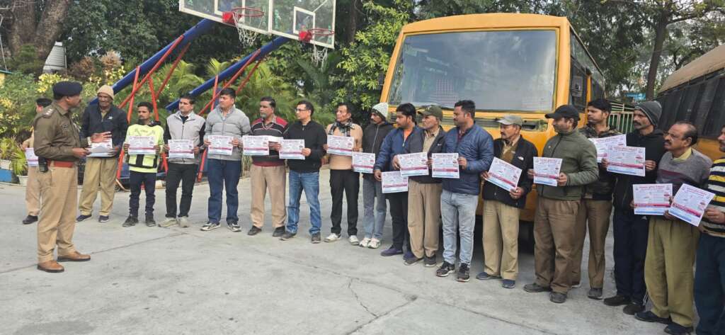 यातायात पुलिस ने सेंट थेरेसा स्कूल काठगोदाम बस संचालकों को यातायात नियमों के प्रति किया जागरूक