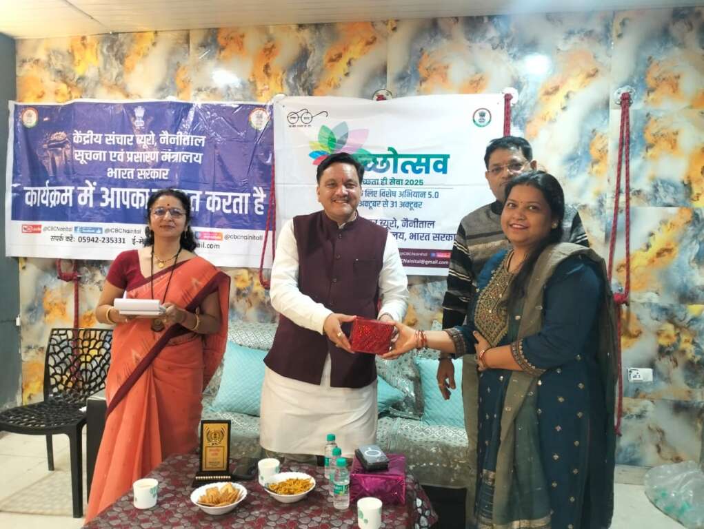 केंद्रीय संचार ब्यूरो (सीबीसी), नैनीताल केंद्र द्वारा मंगलवार को हल्द्वानी में ‘स्वच्छता ही सेवा’ अभियान के तहत एक जागरूकता कार्यक्रम का आयोजन किया गया। कार्यक्रम का आयोजन डीएसए अकादमी, आर.के. टेंट हाउस रोड स्थित सभागार में किया गया, जिसमें हल्द्वानी के महापौर गजराज सिंह बिष्ट मुख्य अतिथि के रूप में उपस्थित रहे।