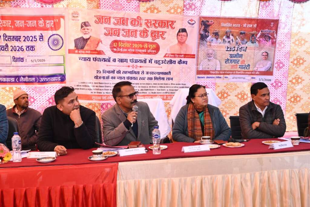 *धामी सरकार की जनकल्याणकारी पहल: ओखलकांडा में “जन-जन की सरकार, जन-जन के द्वार” बहुद्देशीय शिविर सम्पन्न**जिला अधिकारी ललित मोहन रयाल ने सुनी जनता की समस्याएं**475 लोगों को मिला शिविर का सीधा लाभ*ओखलकांडा(भीमताल )5 जनवरी, 2026मुख्यमंत्री पुष्कर सिंह धामी के नेतृत्व में राज्य सरकार द्वारा आमजन को सरकारी योजनाओं का सीधा लाभ उपलब्ध कराने के उद्देश्य से संचालित “जन-जन की सरकार, जन-जन के द्वार” कार्यक्रम के अंतर्गत सोमवार को जनपद नैनीताल के विकासखंड कार्यालय ओखलकांडा में बहुद्देशीय शिविर का आयोजन किया गया। *शिविर में जिलाधिकारी ललित मोहन रयाल द्वारा क्षेत्र की समस्याओं को सुना अधिकांस समस्याओं का मौके पर ही समाधान*शिविर के माध्यम से क्षेत्रीय नागरिकों को राज्य एवं केंद्र सरकार की विभिन्न जनकल्याणकारी योजनाओं की जानकारी भी प्रदान की गई तथा पात्र लाभार्थियों को योजनाओं से जोड़े जाने के साथ ही उनकी समस्याओं की सुनवाई कर त्वरित समाधान भी किया गया।शिविर में विभिन्न विभागों के द्वारा मौके पर विभागीय स्टाल लगाकर विभागीय योजनाओं व सेवाओं का लाभ प्रदान किया गया।मुख्य रूप से शिविर में पेयजल,आदमखोर तेंदुए से निजात दिलाए जाने,जल जीवन मिशन, सड़क, शिक्षा, स्वास्थ्य एवं कूड़े के निस्तारण से संबंधित समस्याओं को प्रमुखता से रखा।शिविर में जिलाधिकारी ने कहा कि माननीय मुख्यमंत्री जी की मंशा के अनुरूप सरकारी योजनाओं का लाभ समाज के अंतिम छोर पर खड़े व्यक्ति तक पहुंचे इसी उद्देश्य से बहुद्देशीय शिविरों के माध्यम से प्रशासन आज उनके द्वार पहुँचा है।शिविर में क्षेत्र में विभिन्न पशु चिकित्सा केन्द्रों में पशु चिकित्सक व पशुधन प्रसार अधिकारी की तैनाती किए जाने, पशु चिकित्सा केन्द्रों के भवन की मरम्मत किए जाने के अतिरिक्त मृत पालतू पशुओं का बीमा का लाभ न मिलने की शिकायत जिलाधिकारी के समक्ष रखी। इस पर *जिलाधिकारी ने कहा कि पहाड़ में पशुपालन ग्रामीणों की मुख्य आजीविका का साधन है*,इस हेतु पशुपालन विभाग पशुपालकों को विभागीय सेवाओं का लाभ प्रदान कराएं। जो भी इसमें लापरवाही करेंगे उनके खिलाफ कार्यवाही होगी। मृत पशुओं के बीमा के संबंध में जिलाधिकारी ने उनकी ओर से सचिव पशुपालन को पत्राचार करने के साथ ही शत प्रतिशत बीमा का लाभ प्रदान करने के निर्देश दिए। साथ ही जिलाधिकारी ने कहा कि क्षेत्र में पशु चिकित्सक रोस्टर तैयार कर ग्रामीणों को सेवाओं का लाभ प्रदान करें। इस संबंध में जिलाधिकारी ने उपजिलाधिकारी धारी को भी समय समय पर क्षेत्र में निरीक्षण करने के भी निर्देश दिए। शिविर में विभिन्न जनप्रतिनिधियों द्वारा क्षेत्र में संचालित ग्राम्य विकास विभाग सहित अन्य विभागों की योजनाओं की जानकारी न मि