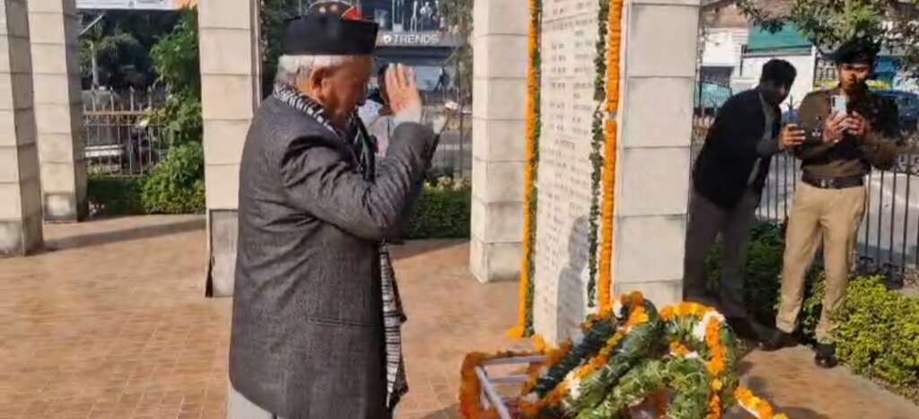 हल्द्वानी के नैनीताल रोड स्थित शहीद पार्क में आज 1971 के भारत-पाक युद्ध में शहीद हुए सेना के अधिकारियों एवं जवानों को श्रद्धांजलि अर्पित की गई। इस अवसर पर उत्तराखंड के पूर्व मुख्यमंत्री एवं महाराष्ट्र के पूर्व राज्यपाल भगत सिंह कोश्यारी, मेयर गजराज बिष्ट, डीएम नैनीताल ललित मोहन रयाल, एसएसपी मंजुनाथ टीसी,एसपी सिटी मनोज कत्याल,नगर आयुक्त परितोष वर्मा,सहित पुलिस, प्रशासन और सैनिक कल्याण विभाग के अधिकारी उपस्थित रहे। कार्यक्रम के दौरान शहीदों के बलिदान को नमन करते हुए उन्हें श्रद्धासुमन अर्पित किए गए तथा शहीदों के परिजनों को सम्मानित भी किया गया। इस मौके पर भगत सिंह कोश्यारी ने कहा कि 1971 की जंग में पाकिस्तान पर भारत की ऐतिहासिक जीत भारतीय सेना के साहस और बलिदान का प्रतीक है, जिसे कभी भुलाया नहीं जा सकता। उन्होंने कहा कि 93 हजार पाकिस्तानी सैनिकों का आत्मसमर्पण और बांग्लादेश का निर्माण भारतीय सेना की गौरवशाली वीरता का इतिहास है, जो सदैव याद किया जाएगा।