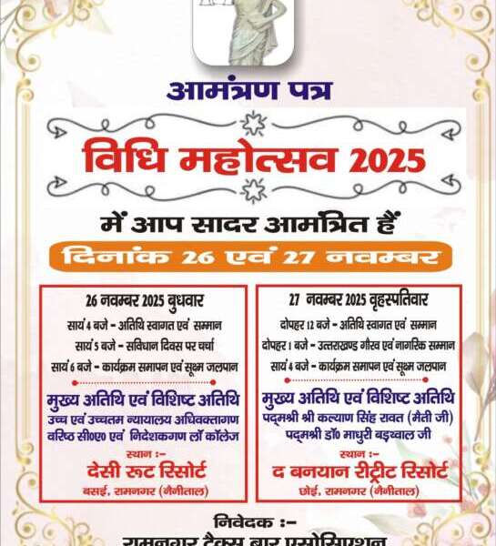 November 8, 2025प्रेस नोट…8 Nov 2025हल्द्वानी: उत्तराखंड स्थापना दिवस की रजत जयंती के अवसर पर संघर्ष सेवा सहयोग...