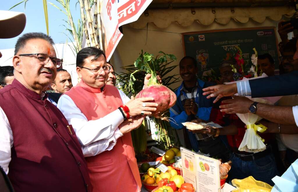 मुख्यमंत्री ने कहा कि हमने किसानों की आय बढ़ाने के लिए पॉलीहाउस के निर्माण हेतु 200 करोड़ रूपए की राशि का प्रावधान भी किया है। इसके अंतर्गत अब तक राज्य में लगभग 115 करोड़ रुपए की सहायता से करीब 350 पॉलीहाउस स्थापित किए जा चुके हैं। उन्होंने कहा कि हम जहां एक ओर गेहूं खरीद पर किसानों को 20 रूपए प्रति क्विंटल का बोनस प्रदान रहे हैं, वहीं हमने गन्ने के रेट में भी 20 रुपये प्रति क्विंटल की बढ़ोत्तरी की है। इसके अतिरिक्त, हमने उत्तराखंड के पहाड़ी क्षेत्रों में वर्षा आधारित खेती को नई ऊंचाइयों पर ले जाने के लिए लगभग 1,000 करोड़ रुपये की लागत से ष्उत्तराखंड क्लाइमेट रिस्पॉन्सिव रेन-फेड फार्मिंग प्रोजेक्टष् भी स्वीकृत किया है। उन्होंने कहा कि हमारी सरकार सब्जियों की तरह ही फलों के उत्पादन को बढ़ाने के लिए भी विभिन्न स्तरों पर काम कर रही है। हमारी सरकार ने 1200 करोड़ रुपये की लागत से नई सेब नीति, कीवी नीति, स्टेट मिलेट मिशन और ड्रैगन फ्रूट नीति जैसी कई महत्वपूर्ण योजनाओं को लागू किया है। उन्होंने कहा कि इन नीतियों के तहत बागवानी को प्रोत्साहन देने के लिए किसानों को 80 प्रतिशत तक सब्सिडी प्रदान की जा रही है।
