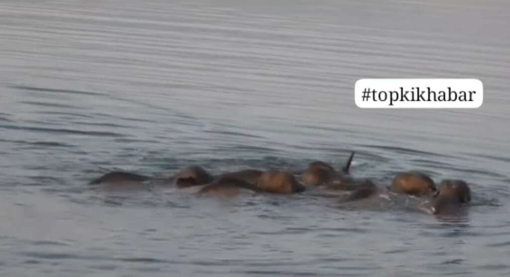 करीब 25 फीट गहरी नदी को हाथियों के झुंड ने अपने बच्चों के साथ बेहद कुशलता और संयम से पार किया। इस अद्भुत दृश्य को नेचर गाइड संजय छिम्वाल ने अपने कैमरे में कैद किया। उन्होंने बताया कि झुंड में शामिल हाथी बच्चों को बीच में रखकर सुरक्षित तरीके से नदी पार करा रहे थे, जो उनके सामाजिक व्यवहार और बुद्धिमत्ता को दर्शाता है।